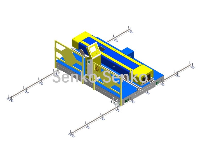 Lors de la pose des voies, la voie transversale pour la navette et la voie longitudinale pour le chariot de transport sont à des hauteurs différentes, la voie longitudinale du chariot de transport étant plus haute que la voie transversale de la navette.