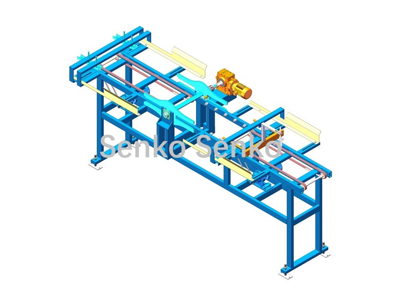 Une fois les briques séparées, la palette vide est acheminée par une chaîne. Un mécanisme de retournement peut être installé sur le convoyeur à chaîne pour retourner la palette vide, qui est ensuite poussée dans la palettiseur.