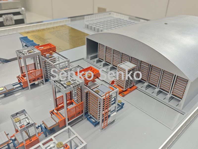 | 7, Convoyeur à palettes de briques | 8. Alimentation des palettes sur le rayonnage | 9, Unité de transfert de rack | 10, Chariot de transfert | 11,RGV | 12, Four de séchage |