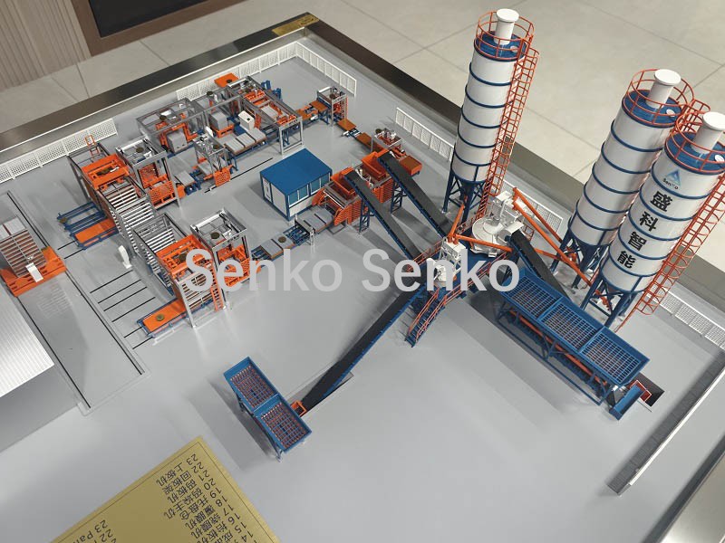 | 1. Machine de dosage | 2. Convoyeur de matériaux de base | 3. Mélangeur | 4, Silo à ciment | 5, Convoyeur à spirale | 6. Machine de formage |
